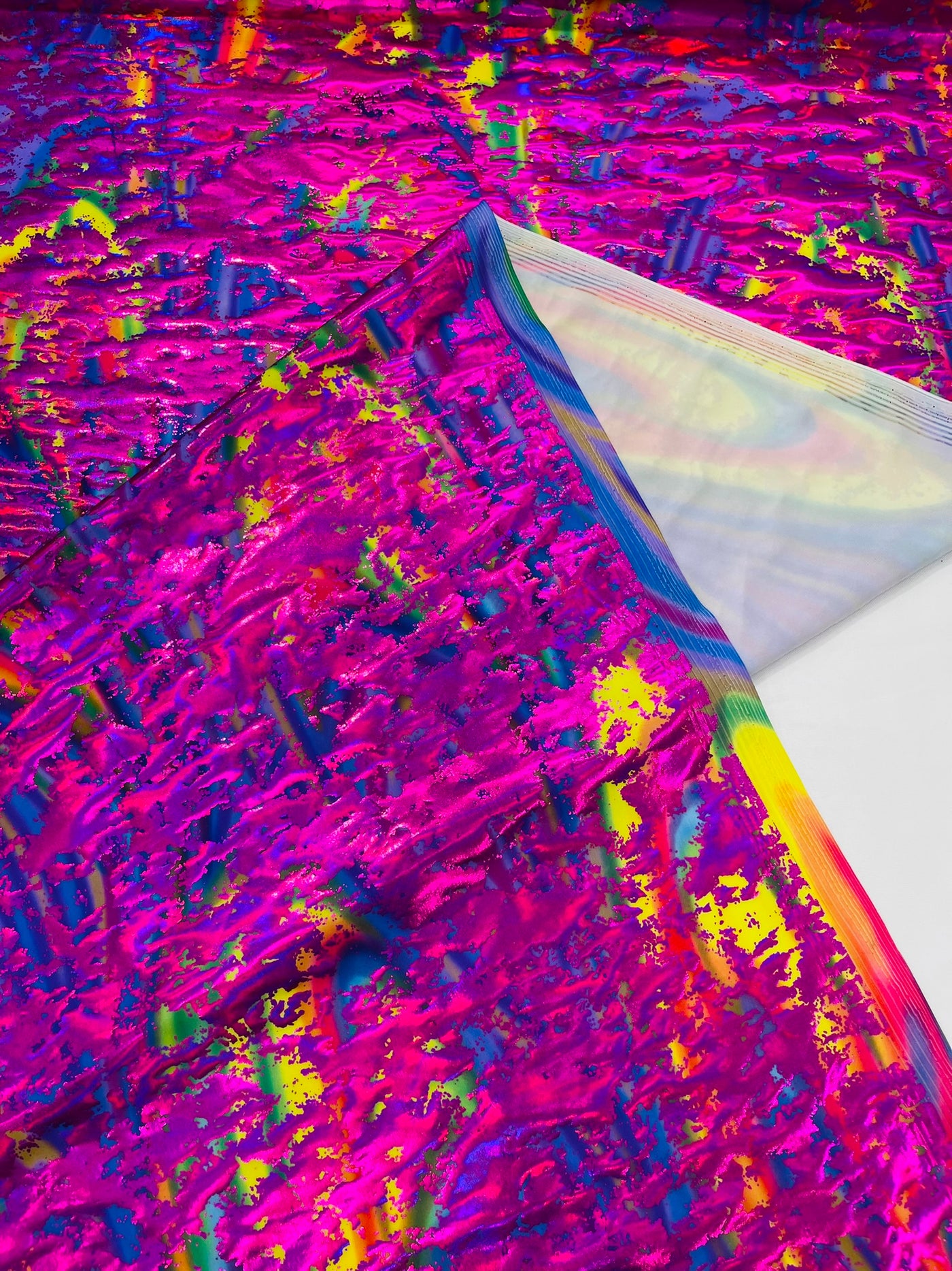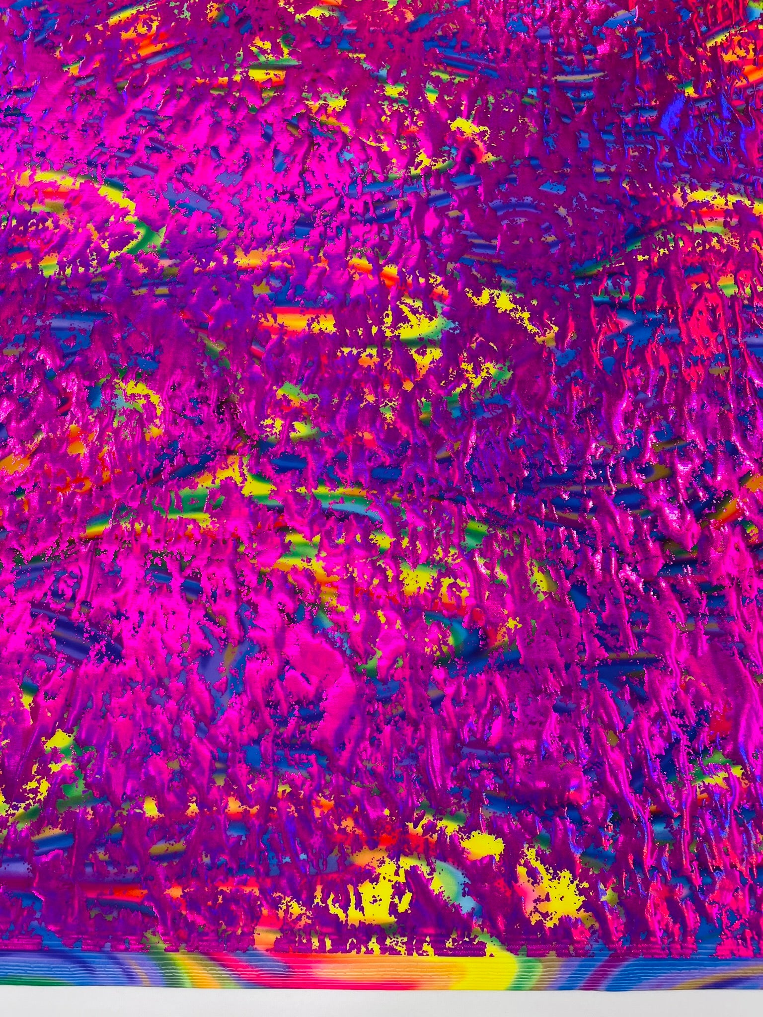 This Splatter Foil Paint is 80% Nylon and 20% Spandex with a black stretch milliskin . It features a reflective and shimmering leopard print. This leopard print is Ideal for costumes, dresses, leggings, clothing, nightgowns, prom dresses, swimsuits, interior décor and much more.